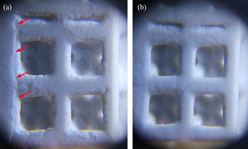 图2 精细多孔支杆结构打印清洗效果对比