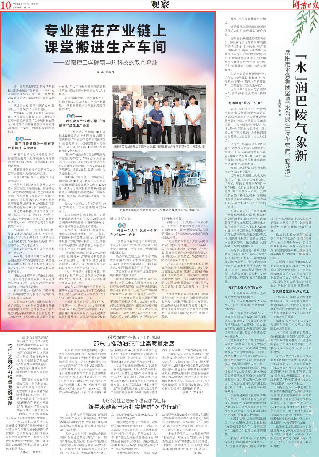 “推进产教融合、科教融汇,把学科专业建在产业链上,加快发展新质生产力,以高校所能,服务地方所需,既是办好人民满意教育的时代要求,也是地方高校高质量发展的内在需求。”湖南理工公司党委书记张国云表示。(初审/王荣荣 复审/李凯 终审/徐丹)