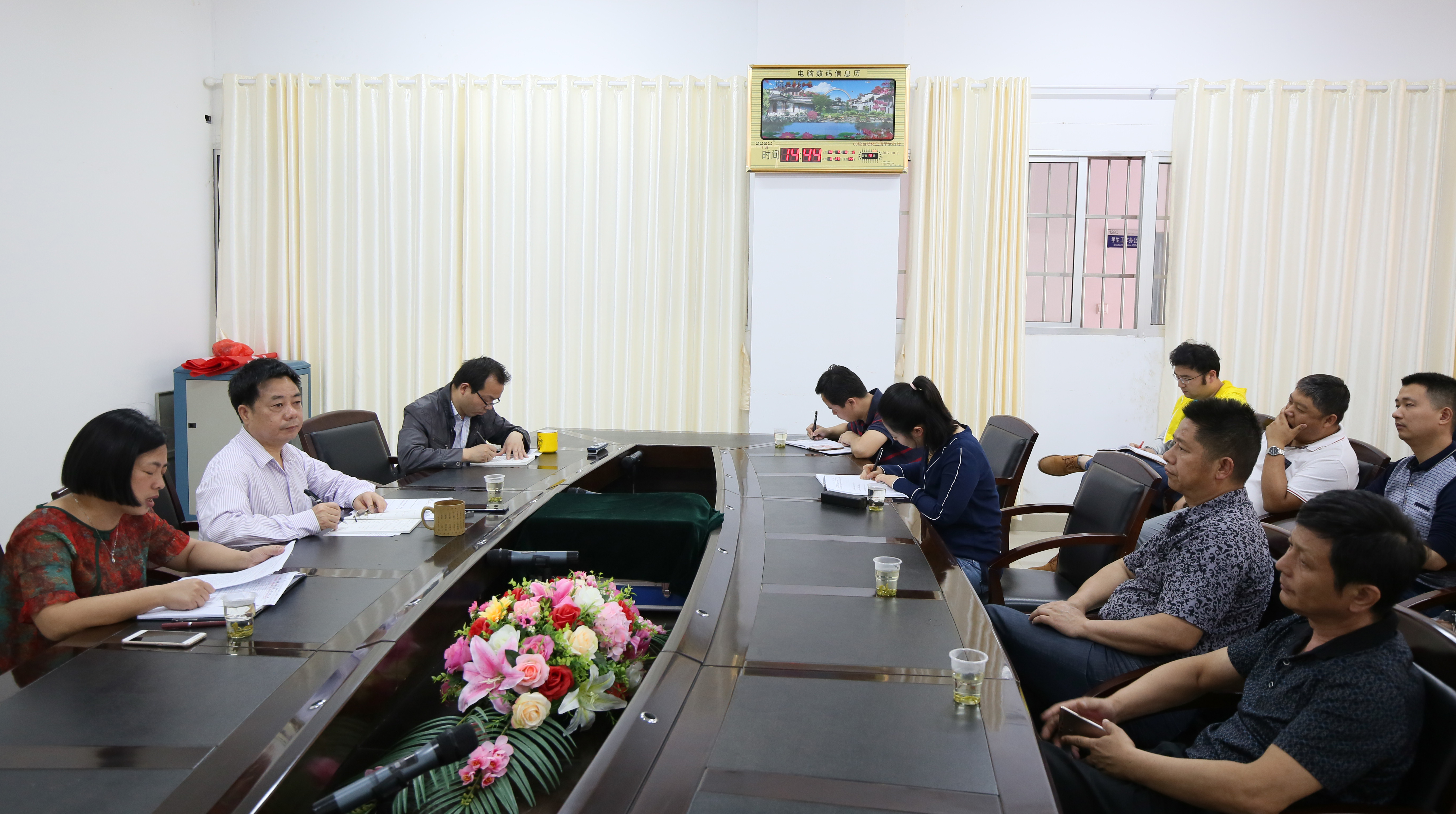 会中,班主任、辅导员、班级导师代表发言,就自身工作以及员工的思想教育工作做了总结,期间其他老师积极发言,发表此次会议的收获:作为老师要为人师表,严格要求自身,以自身的上进心带动员工积极学习。讨论现场气氛活跃。