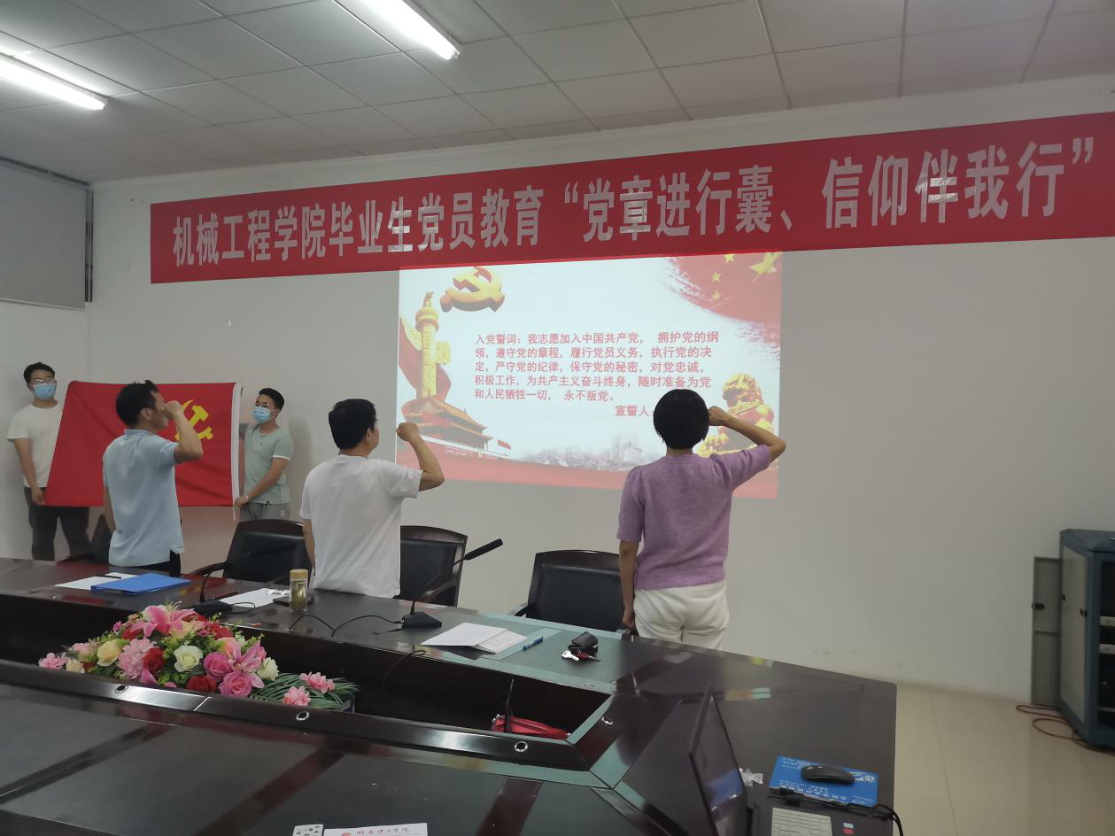 “我志愿加入中国共产党/拥护党的纲领/遵守党的章程/……”。5月28日,机械公司2020届毕业生党员“党章进行囊,信仰伴我行”主题教育活动在公司会议室庄严举行。机械公司全部本科、硕士毕业生党员再次举起右手,庄严宣誓,初心依旧,信念坚定。机械公司党委书记陈积光出席、副书记徐湛主持。
