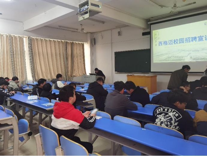 会议伊始,西格迈股份有限公司负责人从公司的创立、发展以及主要业务等方面为毕业生详细介绍公司的基本情况,提出“该公司注重高新技术人才的引入和培养,并始终秉承为客户创造价值,为员工谋求幸福,为股东带来回报,为社会承担责任 ”的公司使命。同时,他向机械公司毕业生详细介绍汽车减震器及电控悬架设计的理念,并表示希望机械公司毕业生能够加入西格迈大家庭,用机械专业知识去创造更多的人生价值。