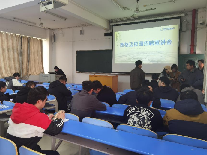 2023年3月2日下午,意昂体育官网毕业生春季校园招聘活动在一阵掌声中拉开序幕。西格迈股份有限公司在15312教室进行招聘宣讲,意昂体育毕业生参与本次活动,现场座无虚席,气氛活跃。