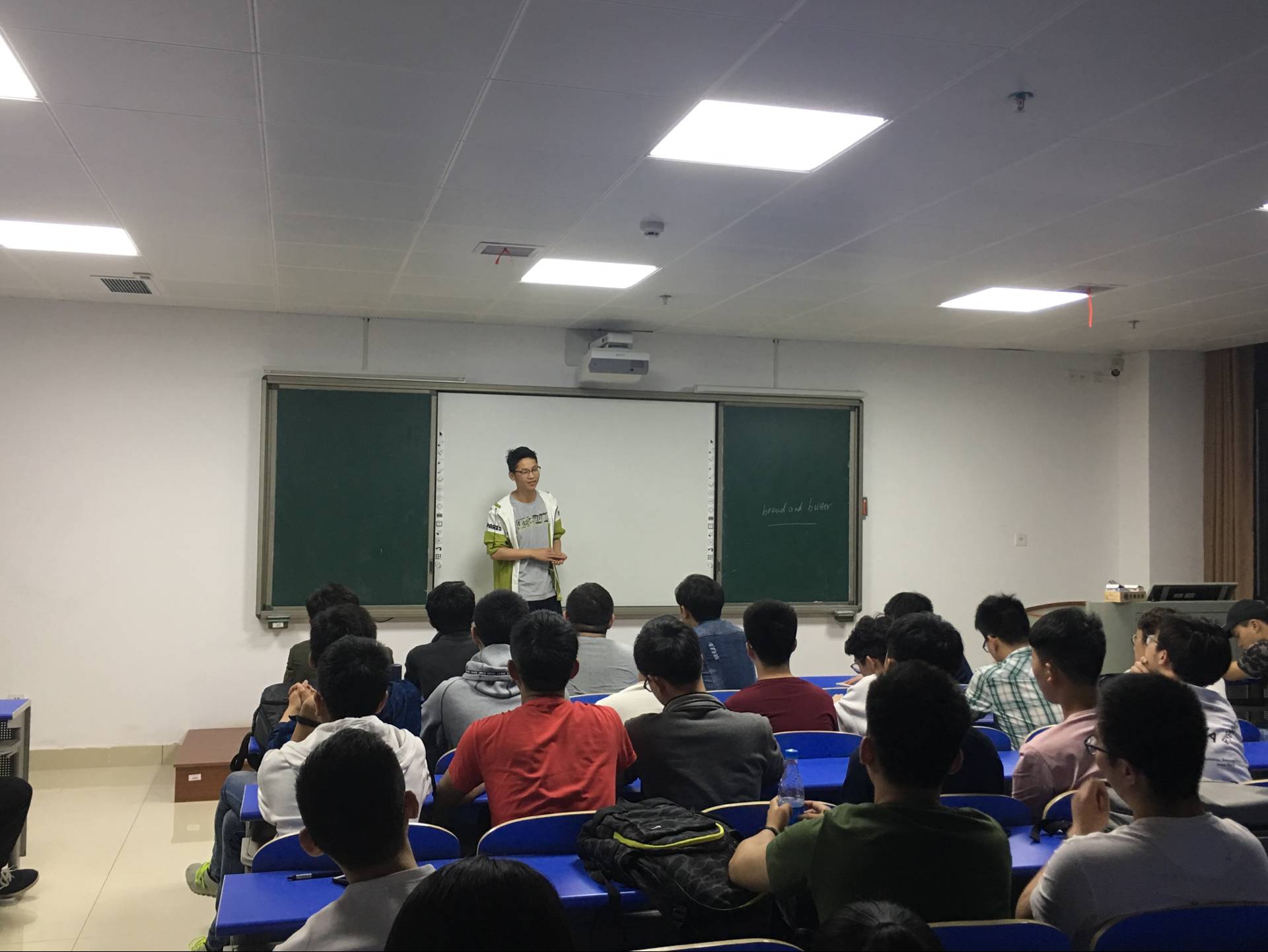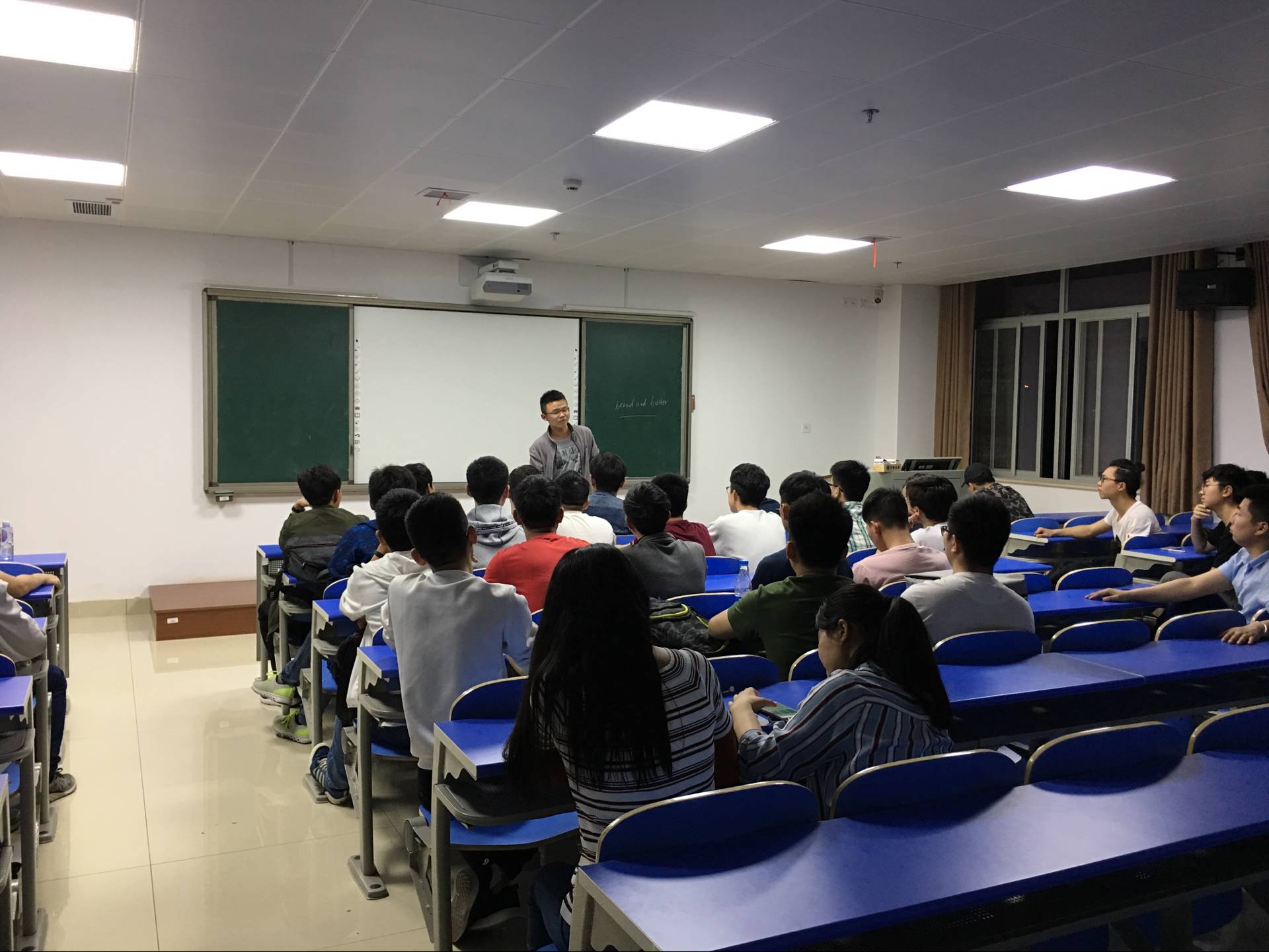 杨海学长从怎样选择考研公司以及如何复习两个大方面入手,详细地分享了他的考研经验。他提醒同学们在选择公司之时要根据自身实力,从专业排名、综合实力和地理位置入手,分别选择略高于自身实力、与实力对等和略低于自身实力的三个公司。并让同学们不仅仅要关注分数线,更要了解意向公司的报录比以及确定自己对于学硕和专硕的选择。在说到如何复习时,他重点提及了数学和英语的复习。他认为:数学要分阶段复习,在“刷真题”阶段要重视查漏补缺,整合各个题型对应的考点,随后,他分析了现在市面上著名的几大老师教学方法的区别及其优劣;英语也应该多做真题,在进行单词的记忆的同时,可以自行归纳核心。杨海学长分享结束之际,语重心长地送给了同学们一句话:考研并非易事,也不是唯一的路,不要盲目跟风。
