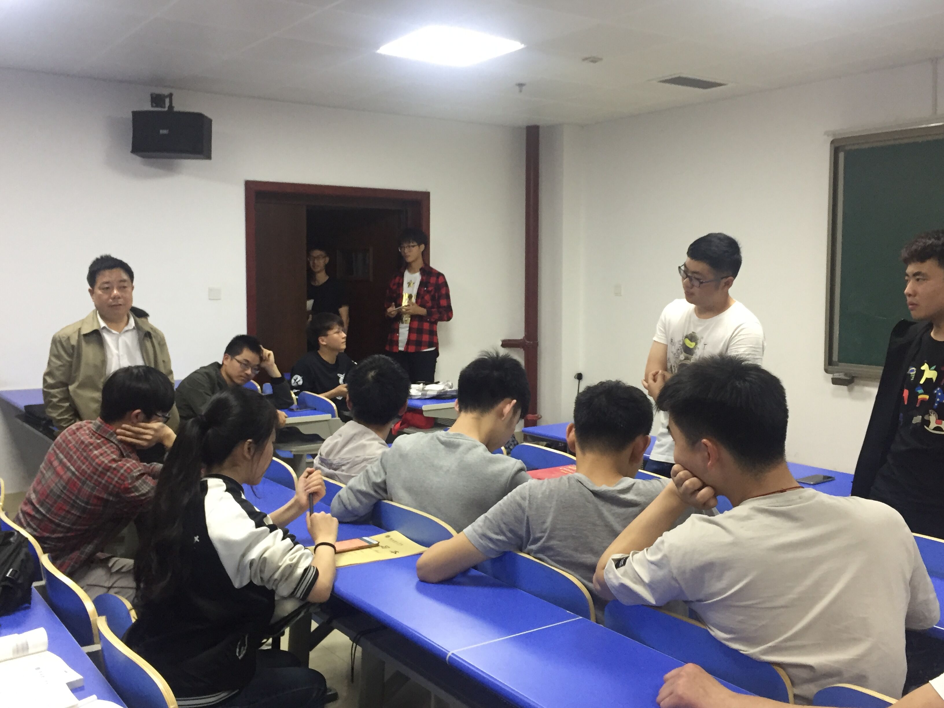 随后在同学们的提问下,几位学长说了关于考研复习步骤的几点建议。首先,在期末考试之前对英语和数学做知识点的全面复习,做到全书心中有数。在暑假可以学习相关的强化视频,并且大量做题;开学后可以开始做真题,保持每天一套或每两天一套的频率,同时开始专业课的复习。最后两个月做一些冲刺阶段难一些的题目,同时复习考研政治的内容。学长们还提出了很多注意事项,例如暑假前的复习不要有太大的强度,不要冲的太猛,有可能会导致后期乏力,坚持不下去等问题。复习前期要先把心静下来,把手机电脑游戏都戒掉,可以极大地提高学习效率,前期准备时不要想太多,目标公司有个基本目标就好,复试的问题先不要考虑。最重要的是要保证初试的分数,这是我们的核心竞争力所在,第一志愿也要量力而行,如果不能被第一志愿录取会很麻烦。另外尽量不要去做开荒者,有学长们带领的经验路会好走很多。同学们纷纷表示受益匪浅,相信他们的复习道路在学长的指导下会少走很多弯路,达到事半功倍的效果。