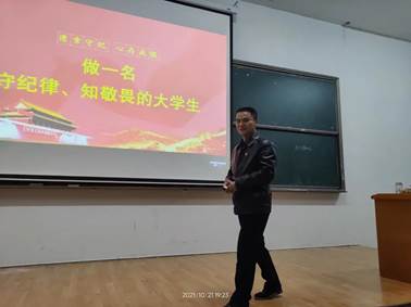 为规范员工言行,培养优良学风,10月21日晚19:00,意昂体育在7T2开展新生入学教育——行为规范教育第一课。本次教育讲座由公司党委书记胡文静主讲,党委副书记徐湛、21级辅导员王荣荣出席,全体21级新生参加此次会议。