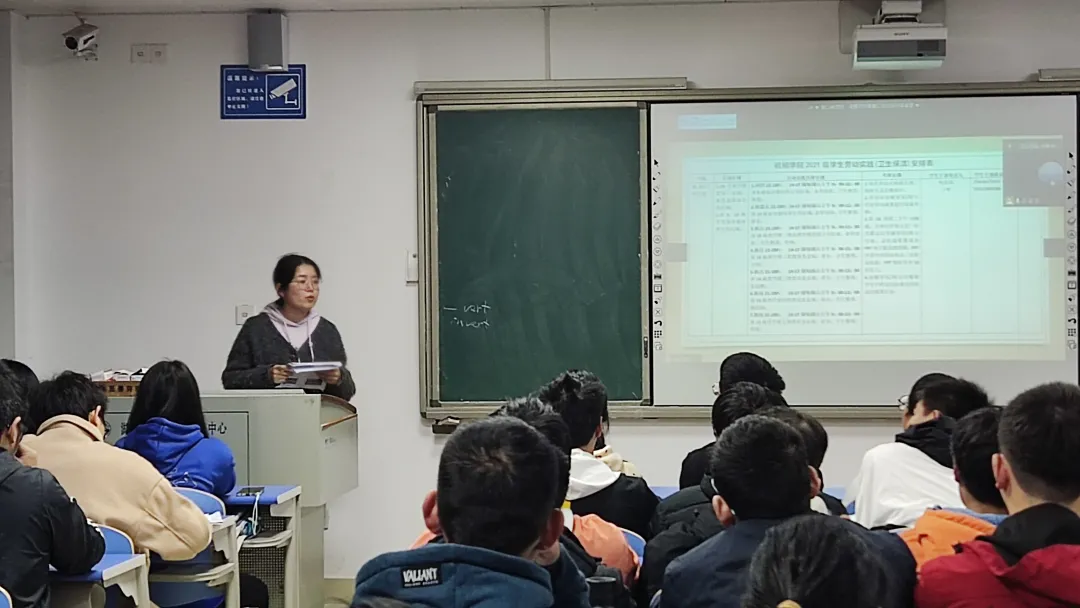 王荣荣详细讲述了劳动教育的目标是:通过参与日常生活、生产、服务性劳动树立正确的劳动观念,具备必备的劳动能力,培育积极的劳动精神,养成良好的劳动习惯和品质。她指出,劳动教育是精神价值与行动价值的统一,也是培养德智体美劳全面发展的社会主义合格建设者和可靠接班人必不可少的一环;21级新生同学需深入学习习近平总书记强调的“光荣属于劳动者,幸福属于劳动者”的实干理念,树立严谨认真的劳动态度,激发创新创造的劳动能力。最后,王荣荣对各个班级劳动实践区域、各班级具体安排、劳动教育课程考核形式及要求做了详细部署。
