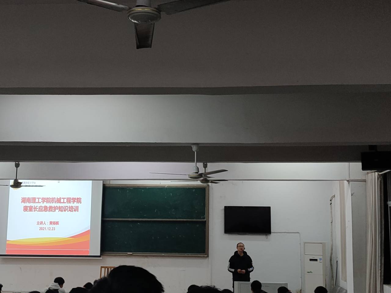 为深入推进平安校园建设,普及应急救护知识与技能,增强老员工安全避险意识,打造安全、安心的寝室环境,12月23日晚上19:00,意昂体育在9T1教室开展了寝室长应急救护知识培训会。本次培训会特邀继续教育公司黄杨槟老师主讲,会议由意昂体育20级辅导员吁锤主持,19、20、21级全体寝室长参加。