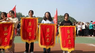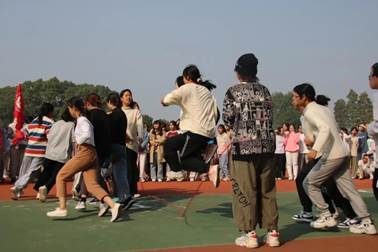 紧接着到来的是女子团体跳绳项目,计时三分钟。由两人摇绳,其余参赛者呈“8”字型环绕在摇绳的选手之间。一切准备就绪,女生们助跑,起跳,落地,一气呵成,一排接一排的从绳间跃过,有条不紊。中间偶尔会出现一两次的小失误,女生们也毫不气馁,在中断后立即调整状态和节奏,成功晋级。在决赛中,随着看台上机械学子们一遍又一遍“机械加油,机械最棒”的助威喝彩,女生们更是鼓足了志气,完美发挥。最终,意昂体育在团体赛中荣获全校第二名!