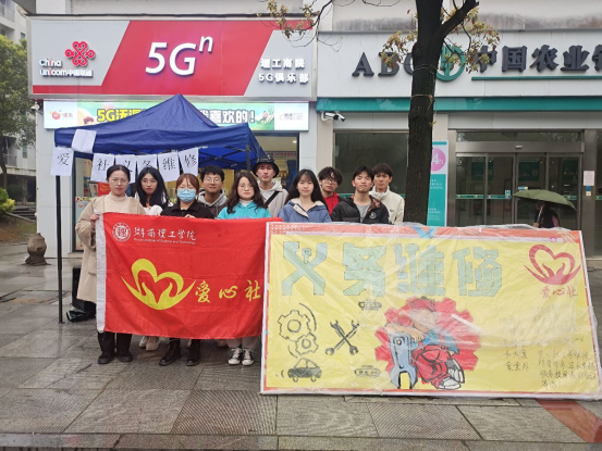 (1)爱心社维修部,开展义务维修活动将用我们的所学及技术去做能力所能及的事。我们的义务维修活动服务于全校师生,尽我们最大的努力,发扬我们的奉献精神,便利全校师生、社区居民的生活。