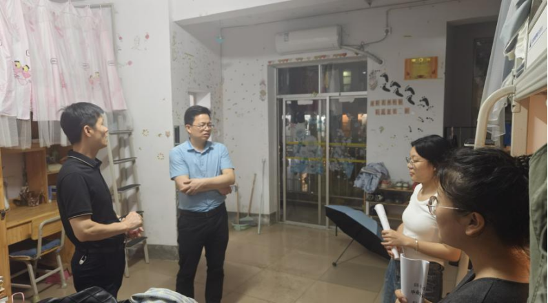 为了解毕业生学习、生活和就业情况,加强毕业季安全管理,持续推进“七进两联系”工作,5月21日21:30,公司党委书记徐丹、副经理(主持工作)周勇、副经理张敬、副书记李凯、辅导员等老师深入走访毕业班员工宿舍。