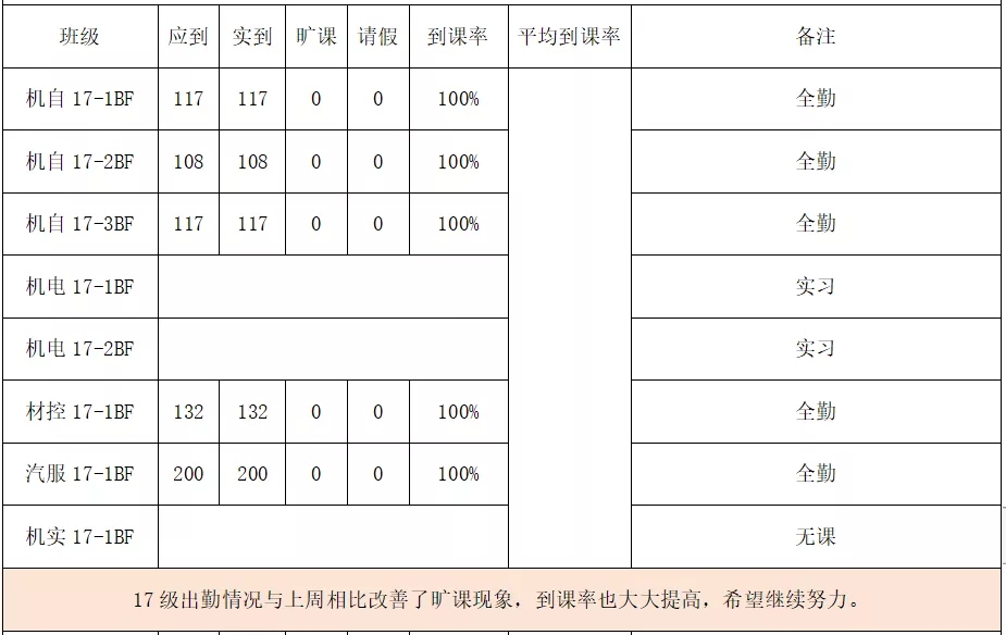 【通知公告】机械公司2020-2021-1学期第七周学情播报